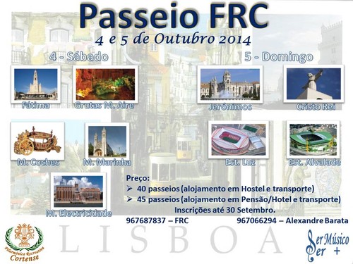 Passeio FRC 2014 - Só restam 6 lugares e as inscrições terminam já amanhã... Filarmónica Recreativa Cortense 29.09.14 link do post comentar favorito